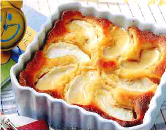 6.焼き型に5.を流し、りんごを放射状に形よく並べる。最初に対角線に置き、間を埋めていくように
